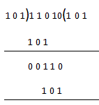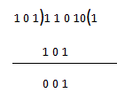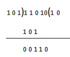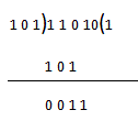 取A = 11010 B = 101,用B除A。