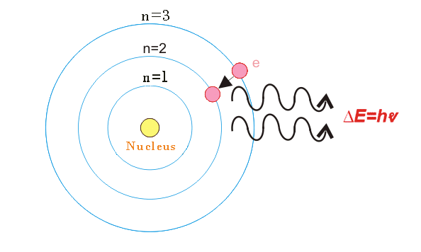 另一方面,当电子从高能级轨道跃至低能级轨道时,电子会以小束的形式释放能量。这些小包被称为广达电脑或光子。光子的能量是,在那里,