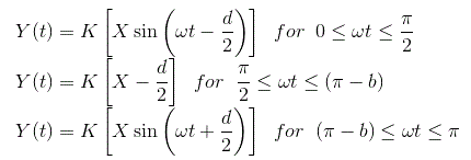 如图所示,我们有真实的特征曲线。如果X小于死区Δ,则继电器不产生输出;的第一个谐波分量傅里叶系列当然是零,描述函数也是零。如果X > Δ继电器产生输出。