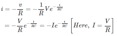 让我们假设电压电容在充满电状态下的电压为V伏。一旦电容器短路时,电路的放电电流为- V / R安培。但是在接通的瞬间之后,它是在t =时+0的当前的通过电路