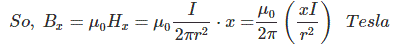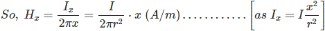 现在考虑小厚度dx,导体长度为1m,其中Hx磁化力是由电流I引起的吗x围绕面积πx2.