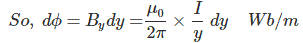 让我们假设磁通D的厚度dy内存在D φ1到D2长度为1m的导体,如图所示。