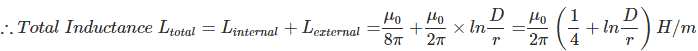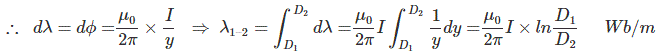 假设导体A的半径为r一个带有当前的的我一个电流I方向相反B通过半径为r的导体BB.导体A与导体B的距离为D,它们的长度都是l。它们彼此很近,所以磁通联系在两个导体中都发生了导体因为它们的电磁效应。