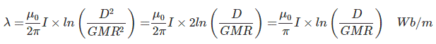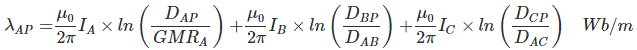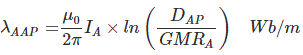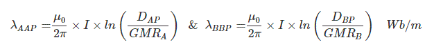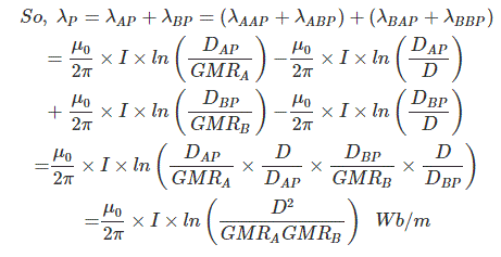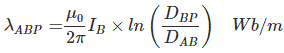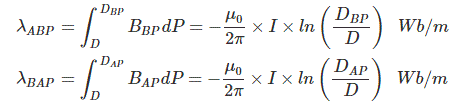 现在,如果我们考虑在导体a和B附近的点P,点P的磁链等于,载流导体a点P的磁链+点P的磁链载流导体B。
