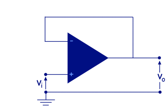 这个电路叫做电压跟随器或单位增益放大器。这是用来隔离两个级联电路,因为它无穷大的阻抗,在运算放大器输入。