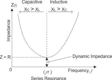 - 电路的总阻抗变为等于R i.e Z = R的最小值。