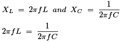 对于某些频率的RLC电路,称为谐振频率,必须记住以下几点。所以在共鸣: