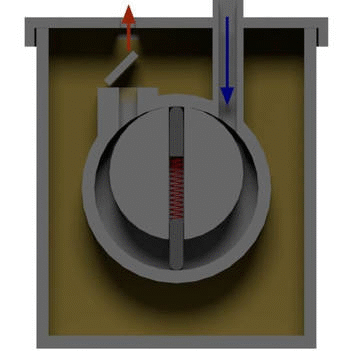 上面的动画图显示了一个固定叶油真空泵.在这里,叶片不旋转,而是根据偏心旋转转子的位置上下移动。